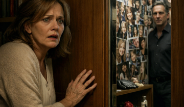 Случайно нажала на панель в кабинете мужа. Открылась ниша. Стены были увешаны фото.