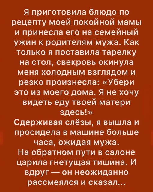 Я почувствовала, как кровь отхлынула от лица, а в горле встал плотный ком. Никто не заступился. Никто не сказал ни слова. Муж уставился в тарелку, будто вдруг нашёл в ней что-то невероятно важное.
