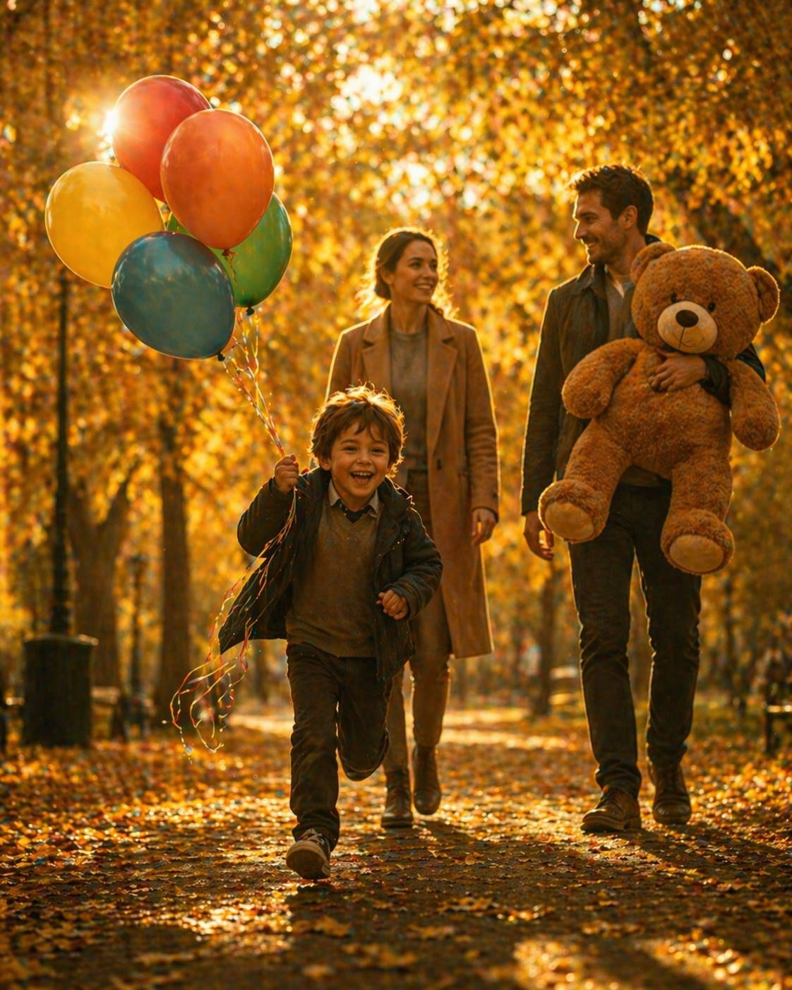 Когда мы возвращались домой, Миша крепко спал на руках у Андрея, обнимая своего нового медведя. Шарики я привязала к ручке коляски — Миша категорически отказался садиться в неё, предпочитая идти самостоятельно. Но к концу прогулки он так устал, что начал капризничать, и Андрей предложил его понести.
