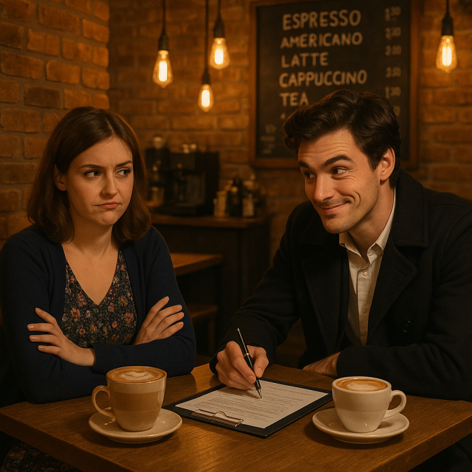 Только тогда Дмитрий оторвал взгляд от экрана. Сначала он посмотрел на лист, затем медленно перевёл глаза на жену. В его взгляде не было ни интереса, ни тревоги — лишь лёгкое раздражение, как будто она прервала важный ритуал. Он лениво потянулся, взял бумагу, развернул. Его брови поползли вверх.