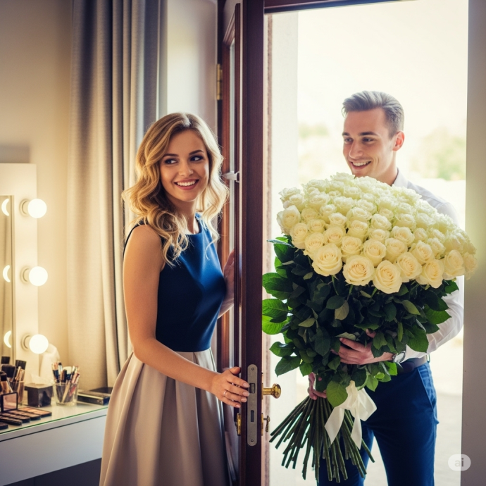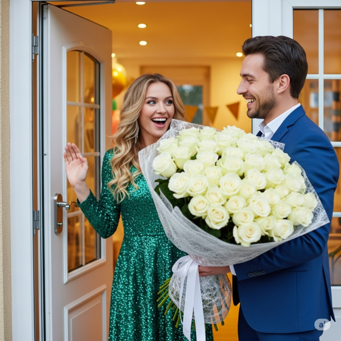 За дверью стоял Данил с таким огроменным букетом белых роз, что казалось, будто цветы растут прямо из него.