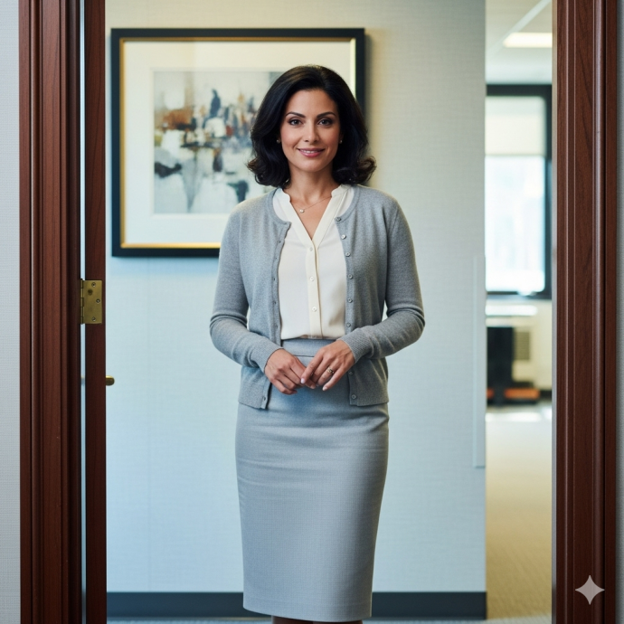 Дверь в отдел маркетинга открылась беззвучно. На пороге стояла девушка — серая юбка чуть ниже колен, блузка, застегнутая на все пуговицы, и кардиган такого мышиного цвета, что, казалось, он вот-вот сольется с офисной стеной.