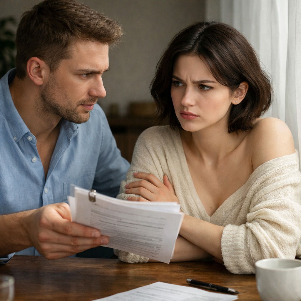 — Когда будем переписывать на меня долю в твоей квартире? — спросил муж у жены и протянул ей документы, небрежно бросив тонкую папку на мраморную столешницу.