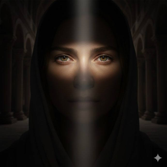 Она обернулась, просто почувствовав взгляд. На секунду её лицо побледнело, руки дрогнули.