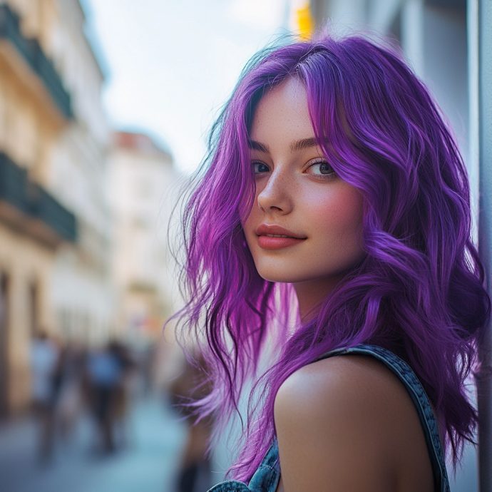 Когда девушка сняла шлем, Вадим поразился: её волосы оказались ярко-фиолетовыми, а в носу поблёскивало изящное колечко.