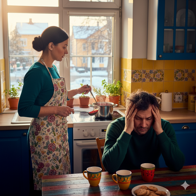 Я стояла у окна кухни, машинально помешивая борщ, когда Андрей вернулся от матери. По его лицу сразу поняла — разговор прошёл не так, как мы надеялись. Он прошёл к столу, сел, положил локти на столешницу и потёр виски.