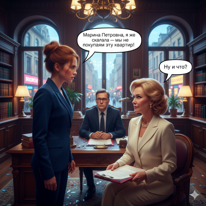 Марина Петровна, я же сказала — мы не покупаем эту квартиру! — не выдержала я, когда увидела свекровь в кабинете нотариуса
