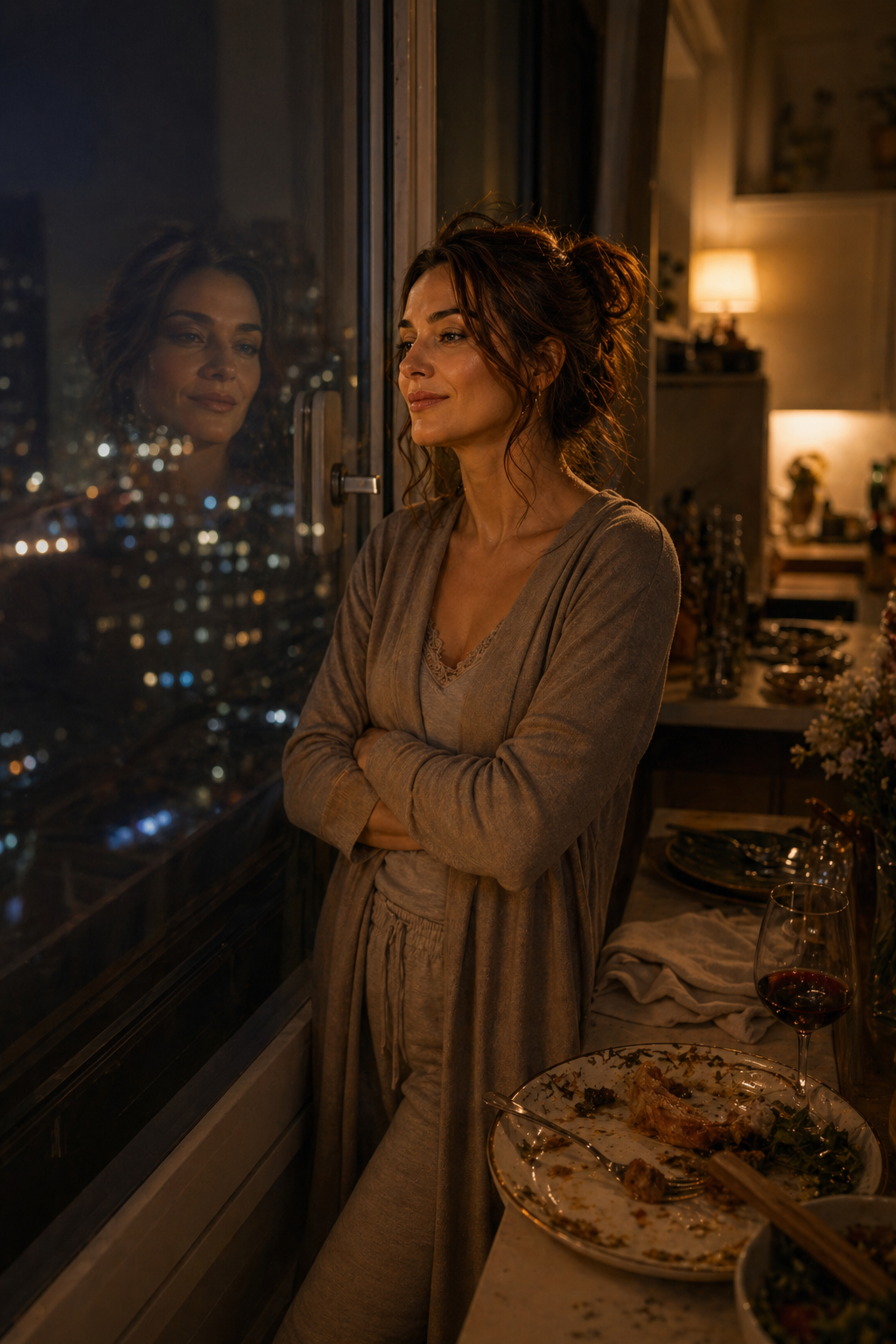 Катя знала. Она сложила пустые тарелки и на секунду остановилась у окна. Город внизу мерцал огнями, где-то вдалеке шли люди с охапками тюльпанов, и март наконец начинал ощущаться как март — с той осторожной, ещё не уверенной в себе теплотой, которая всё равно пробивается сквозь любой мороз.