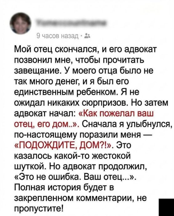 В письме отец признавался: много лет назад он взял на себя чужую вину. Его друг попал в серьёзную историю — дело, которое грозило тюрьмой. Чтобы спасти семью и маленького ребёнка, мой отец официально признал себя виновным, отсидел срок, потерял работу, репутацию и право на нормальную жизнь. За это ему тайно передали дом и пообещали помогать деньгами. Но помощь вскоре прекратилась.