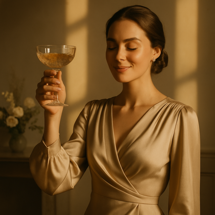 Она медленно, с какой-то отстранённой грацией, подняла руку и провела пальцем по липкому, тёмно-бордовому пятну, расползшемуся по её груди. Вино уже высохло, оставив жёсткую, неприятную на ощупь корку. Затем она так же медленно опустила руку.
