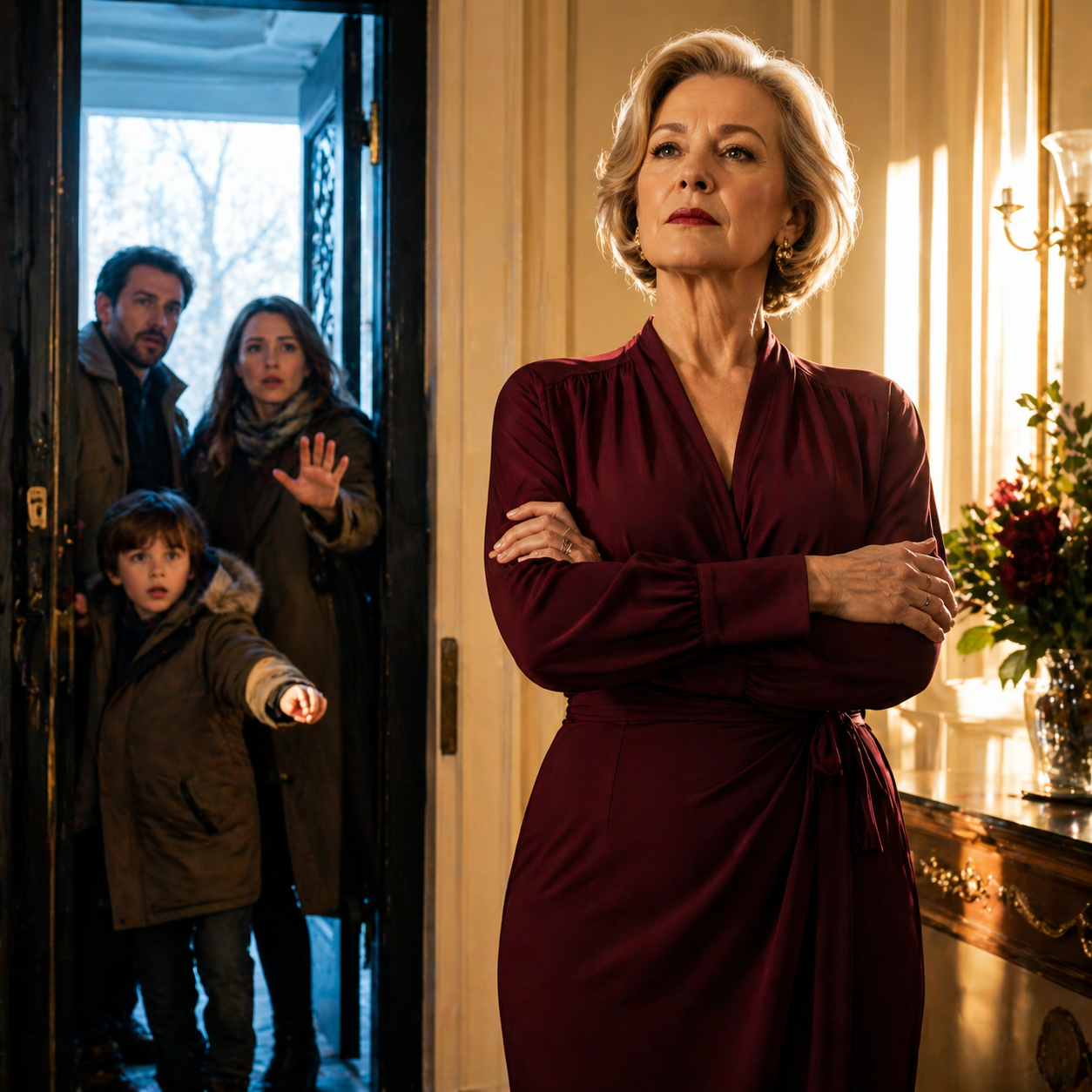 Лязгнул замок. Дверь открылась. На пороге стояли Геннадий, Вера и все трое детей — раскрасневшиеся с мороза, в шапках, с пакетами. Стёпа уже тянул к ней руки, готовясь обниматься. Кирилл начал расстёгивать куртку. Вера шагнула вперёд.
