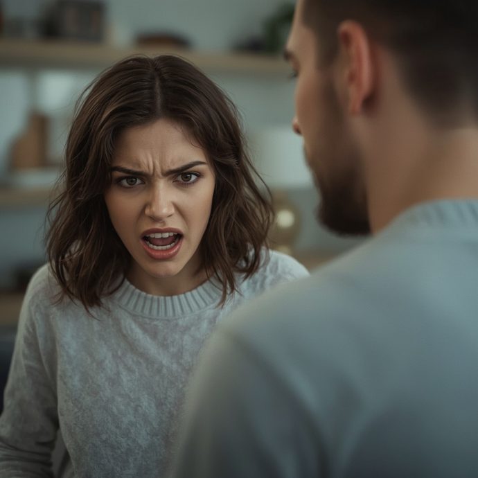 Он завёлся мгновенно, как старый мотор, которому достаточно одной искры. Его лицо начало наливаться тяжёлой, нездоровой краснотой. Он шагнул к дивану, встал над ней, пытаясь своим телом, своим присутствием пробить ту ледяную стену безразличия, которую она возвела вокруг себя.