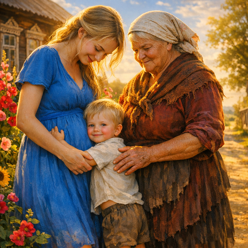Она сама изменилась. Не стало прежней резкости в голосе, тяжёлого шага. Словно отдала свою силу — и не потеряла, а обрела что-то другое. Терпение. Тепло. Мудрость. Теперь она могла сидеть на завалинке, держать внука на коленях и рассказывать ему сказки — не громким командирским голосом, а тихо, с улыбкой.