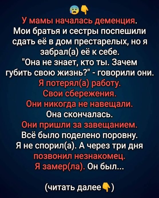 «Это не отнято у ваших братьев и сестёр. Это моё. Я не покупаю ваше прощение. Я возвращаю долг. Вы потеряли работу и здоровье, ухаживая за мамой. Я не мог быть рядом тогда. Позвольте мне быть полезным сейчас».