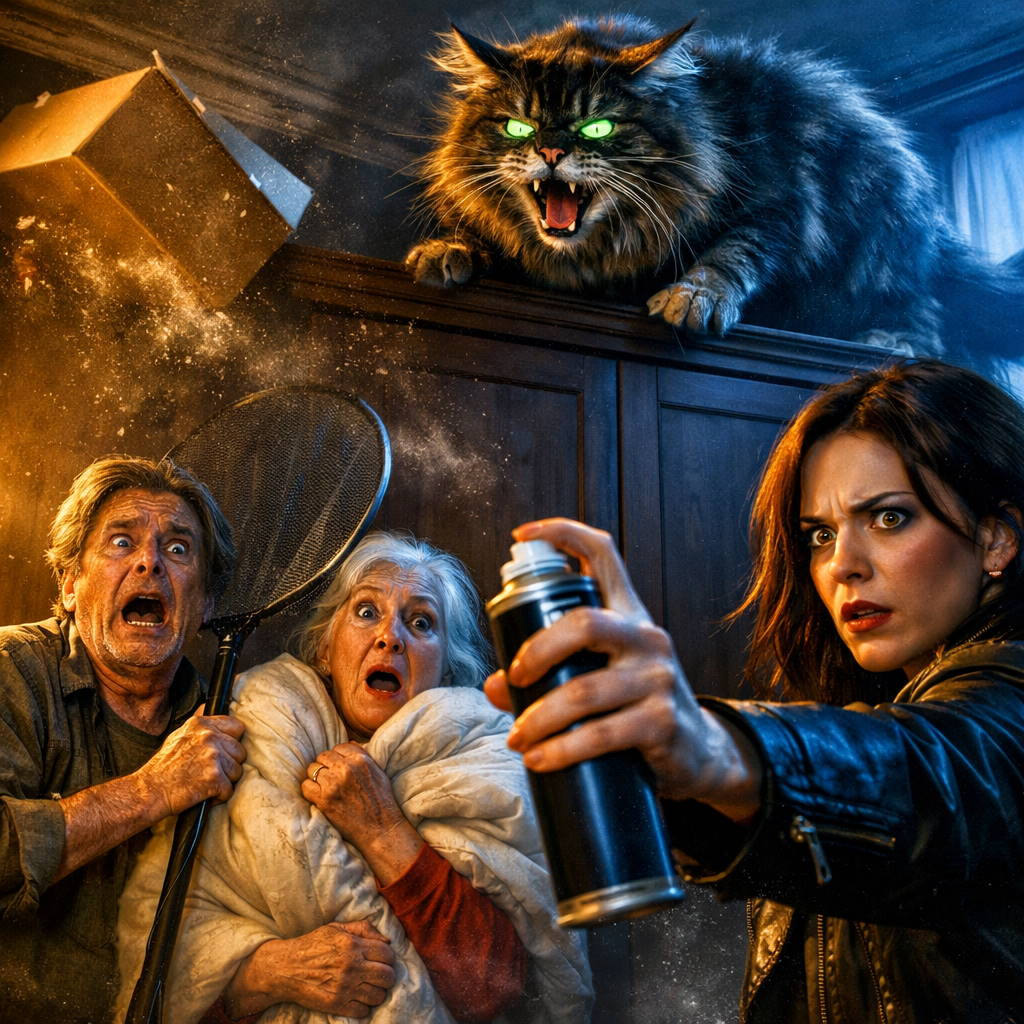 Вера, всё еще не опуская руки с баллончиком, медленно подняла голову и почувствовала, как внутри всё обрывается от нелепости происходящего. На пыльной антресоли, среди коробок с обувью, сидело нечто огромное, лохматое и неописуемо злобное.