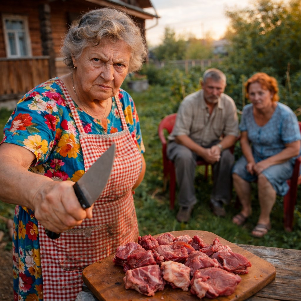 Утром она поехала на рынок. Купила мясо — хорошее, много. Купила овощи, зелень, специи. Замариновала свинину так, как умела только она — с луком и аджикой. Приготовила всё, что нужно.