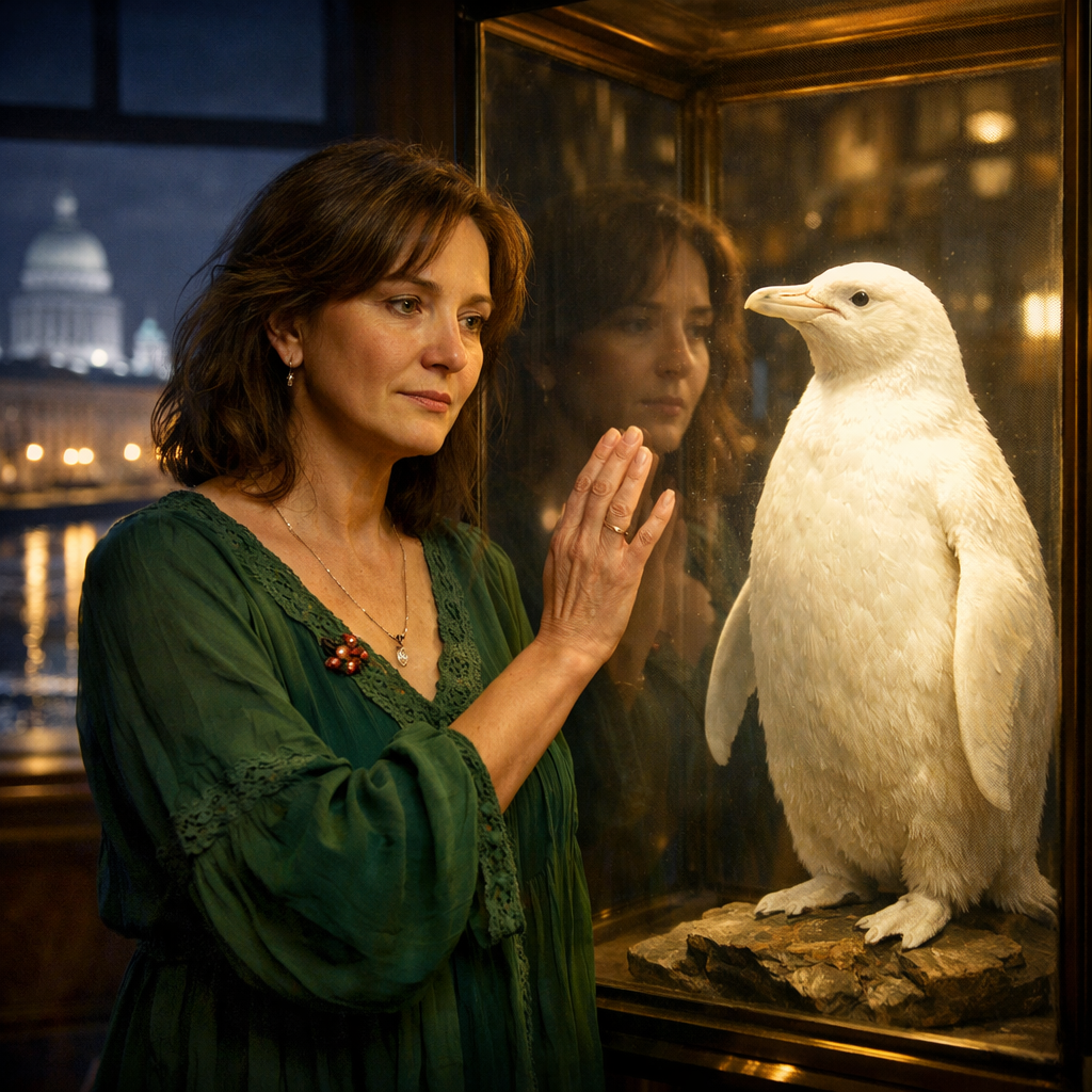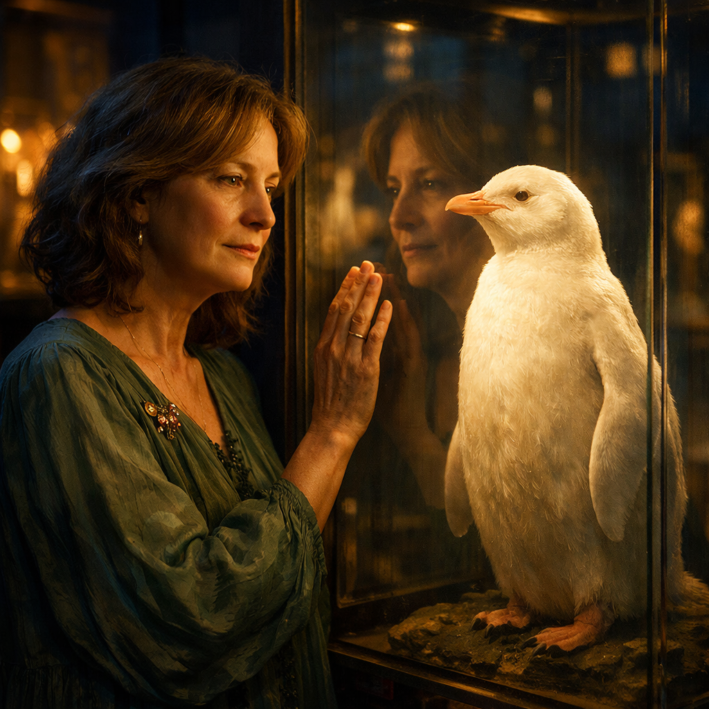 Пингвин-альбинос стоял на своём месте, белоснежный, гордый, слегка насмешливый. Алёна поправила табличку, стряхнула невидимую пылинку с стекла витрины и вдруг поняла, что руки у неё больше не дрожат.