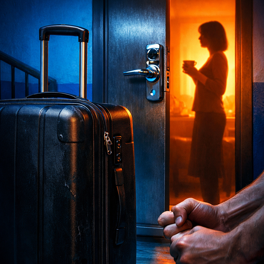 Звуки за дверью сменились с простого недоумения на глухую, нарастающую ярость. Сначала Олег еще пару раз с остервенением дернул ручку, словно надеясь, что механизм заело случайно. Затем повисла короткая пауза — видимо, в этот момент он перевел взгляд вниз и наконец осознал, что за натюрморт выстроен у его ног. Старый чемодан, зимняя куртка, небрежно брошенная поверх ручки, и стоптанные домашние тапки, сиротливо притулившиеся у порога.