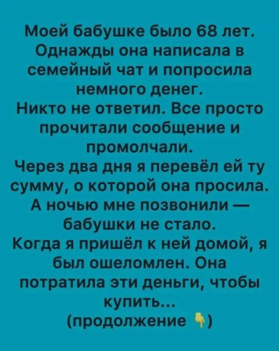 Через два дня я перевёл бабушке ровно ту сумму, о которой она просила. Без комментариев. Без упрёков. Просто написал: «Держись. Я рядом».