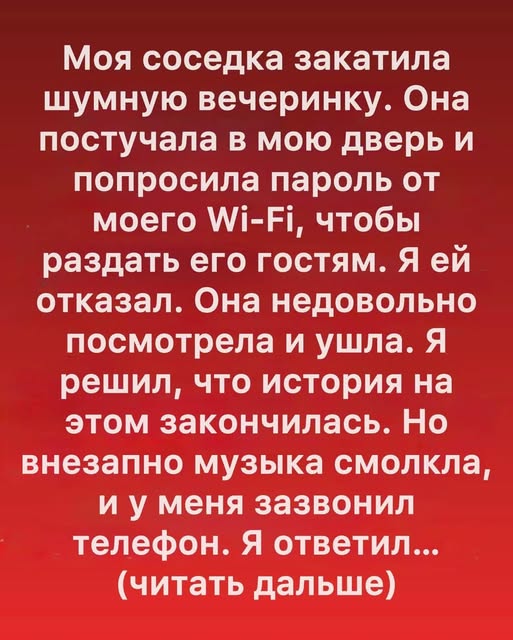 Соседка устроила громкую вечеринку и попросила пароль от моего Wi-Fi. Я отказал — и вскоре вместе с полицией решил её судьбу