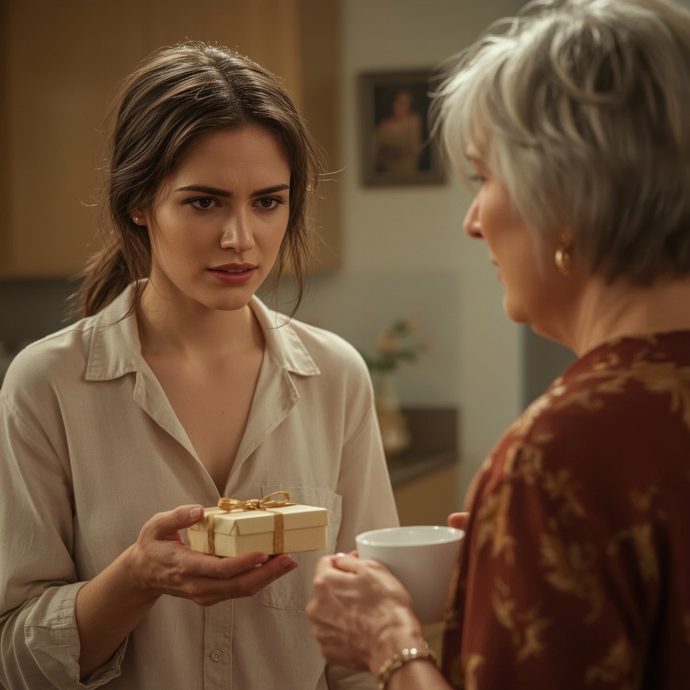 Она полезла в свою сумочку и достала ту самую бархатную коробочку. Игорь напрягся, почувствовав неладное. Елена Сергеевна смотрела с победной усмешкой, ожидая услышать слова благодарности. Вика положила коробочку на стол и мягко подтолкнула её через скатерть к свекрови.