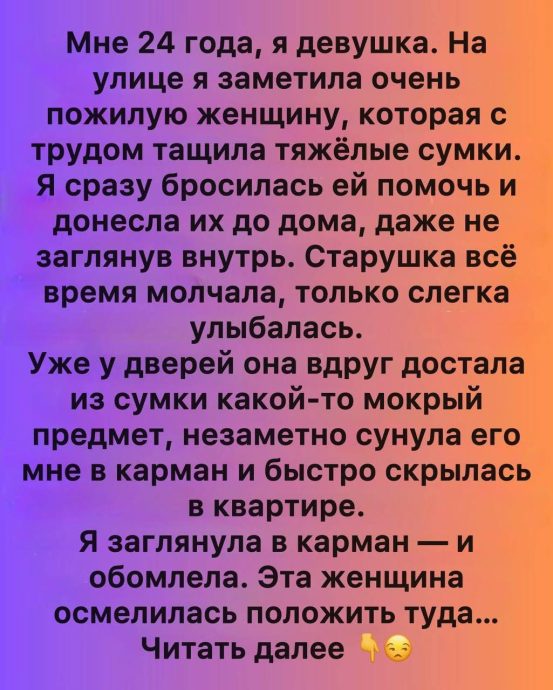 Я хотела отказаться снова, но у меня задрожали губы. Потому что в тот момент я увидела в ней не “бабушку из магазина”, а человека, который прошёл через страх, унижение, одиночество — и всё равно нашёл в себе силы довериться чужой девушке на улице.