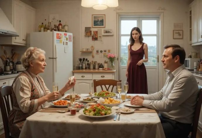 Она стояла в дверях кухни, с фужером шампанского в руке. На ней было новое платье цвета сухого вина, волосы аккуратно заколоты, глаза холодные. В них не было ни злости, ни обиды — просто пустота, как в холодильнике после недельной командировки.