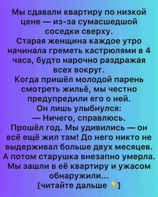 А потом соседка сверху внезапно умерла.
