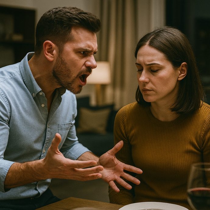Ты хоть понимаешь, что выставила меня идиотом перед всеми? Молчи лучше, чем так позорить! — крикнул муж