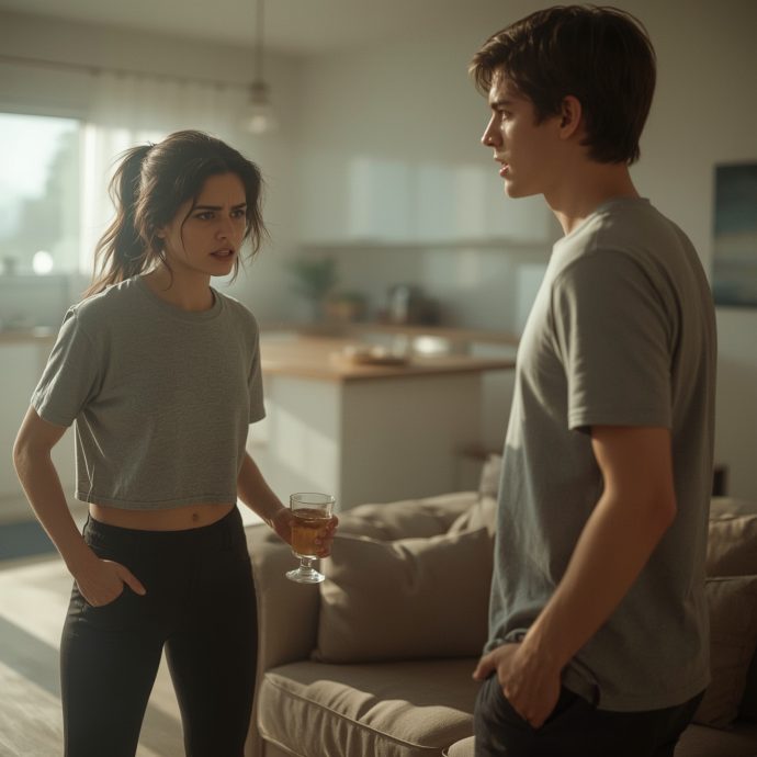 Он даже не повернул головы в её сторону. Движение в его сторону было лишь одно — он поднёс банку ко рту и сделал долгий, шумный глоток. Звук этот, громкий и утробный, прозвучал в тихой квартире как оскорбление.