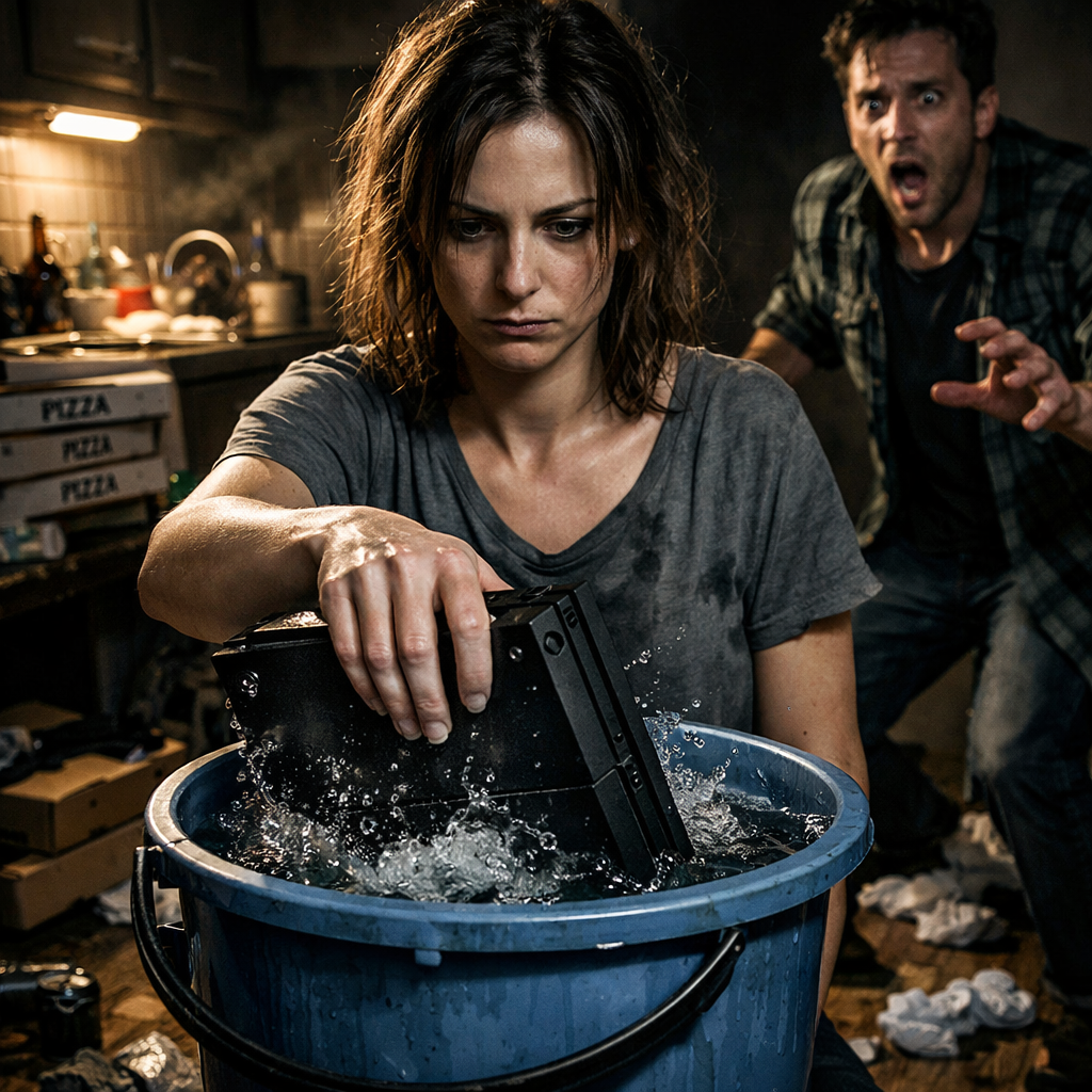 Она подошла к тумбе с телевизором. Спокойно, без суеты, поставила ведро на пол. Затем она так же методично наклонилась и выдернула из розетки шнур питания приставки и кабель, ведущий к телевизору. Стас обернулся, когда экран погас. — Эй, ты чего делаешь? Он не успел договорить. Она взяла в обе руки чёрную, глянцевую коробку консоли. Она была тяжёлой. Стас вскочил с дивана, но замер на полпути, не понимая, что происходит. Светлана подняла голову и посмотрела ему прямо в глаза. В её взгляде не было ярости. Там была пустота. И с этим пустым взглядом, медленно и аккуратно, она опустила приставку в ведро с водой.