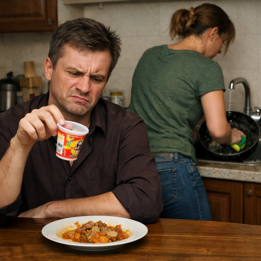 Роман держал пластиковый стаканчик двумя пальцами, словно это была дохлая мышь, которую кот притащил на ковер, и с брезгливостью рассматривал яркую этикетку. Он сидел во главе стола, отодвинув от себя тарелку с недоеденным рагу. Екатерина стояла у раковины, спиной к нему, и с остервенением терла сковороду жесткой стороной губки. Шум воды заглушал часть слов, но интонацию мужа она улавливала безошибочно — этот тон, спокойный, тягучий и пропитанный ядом, она слышала каждый вечер последние пять лет. Это был тон учителя, отчитывающего нерадивого второгодника.