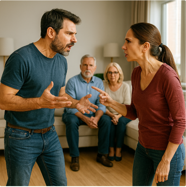 — Ты невыносима! Даже слушать тебя противно. Куском попрекаешь моих родителей, которые столько для нас сделали! — Герман хлопнул дверью и ушёл прочь, обидевшись на жену.