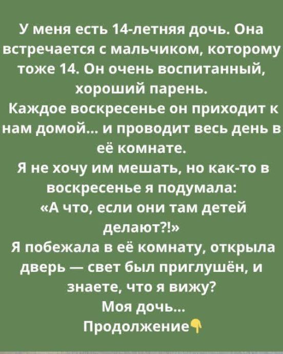 И вот, однажды, я случайно зашла в комнату — не потому что подозревала, а потому что хотела позвать их к ужину.