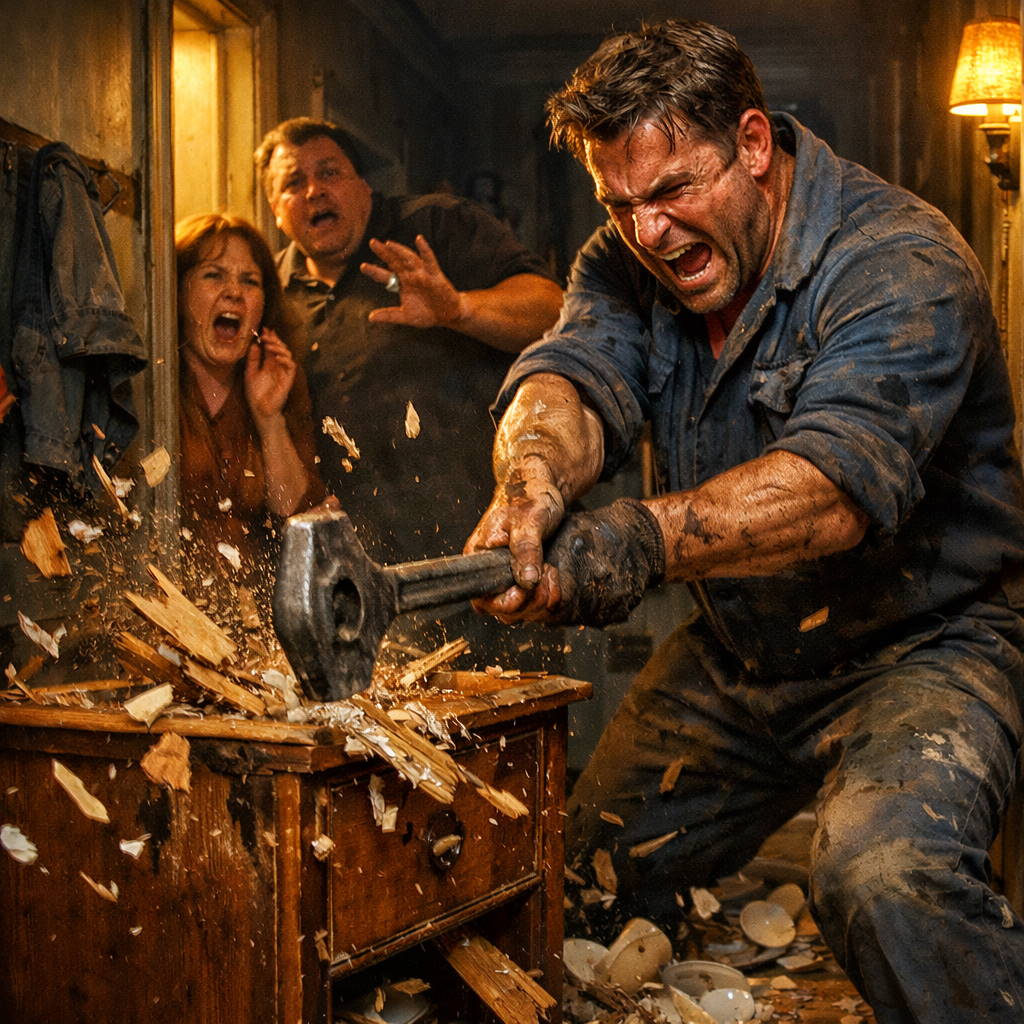 Юра не стал оправдываться. Он не стал мямлить. Он схватил со стола тяжёлый гаечный ключ, который забыл выложить из сумки, и со всего размаху, с диким, гортанным рыком, ударил им по старой деревянной тумбочке в прихожей. Дерево хрустнуло и разлетелось в щепки.