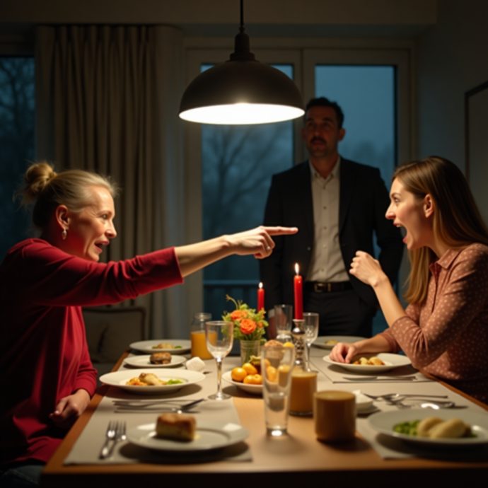 Тишина повисла над столом как тяжелое одеяло. Кристина смотрела на свекровь, не веря услышанному. Олег замер с куском хлеба в руке. Воздух словно сгустился, стал вязким и душным.