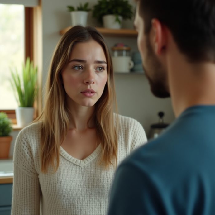 Валерия медленно поставила стопку тарелок на столешницу. Она не повернулась к нему сразу. Она просто стояла спиной, и в этой неподвижности было что-то новое, непривычное. Антон слегка нахмурился, его идиллическая картина мира дала первую трещину. А потом она медленно обернулась.