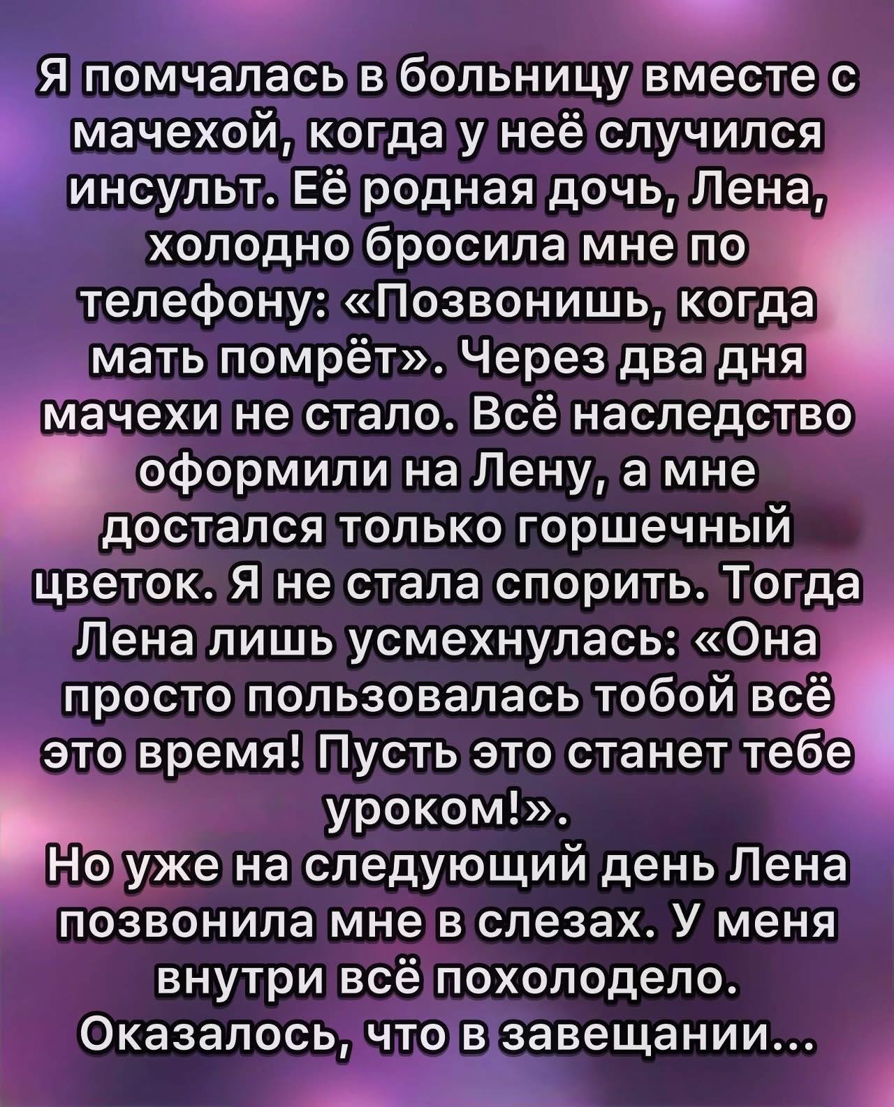 — Я сначала не обратила внимания. Думала, ерунда какая-то. А сегодня нотариус позвонил, сказал прийти — там ещё лист был, отдельно.