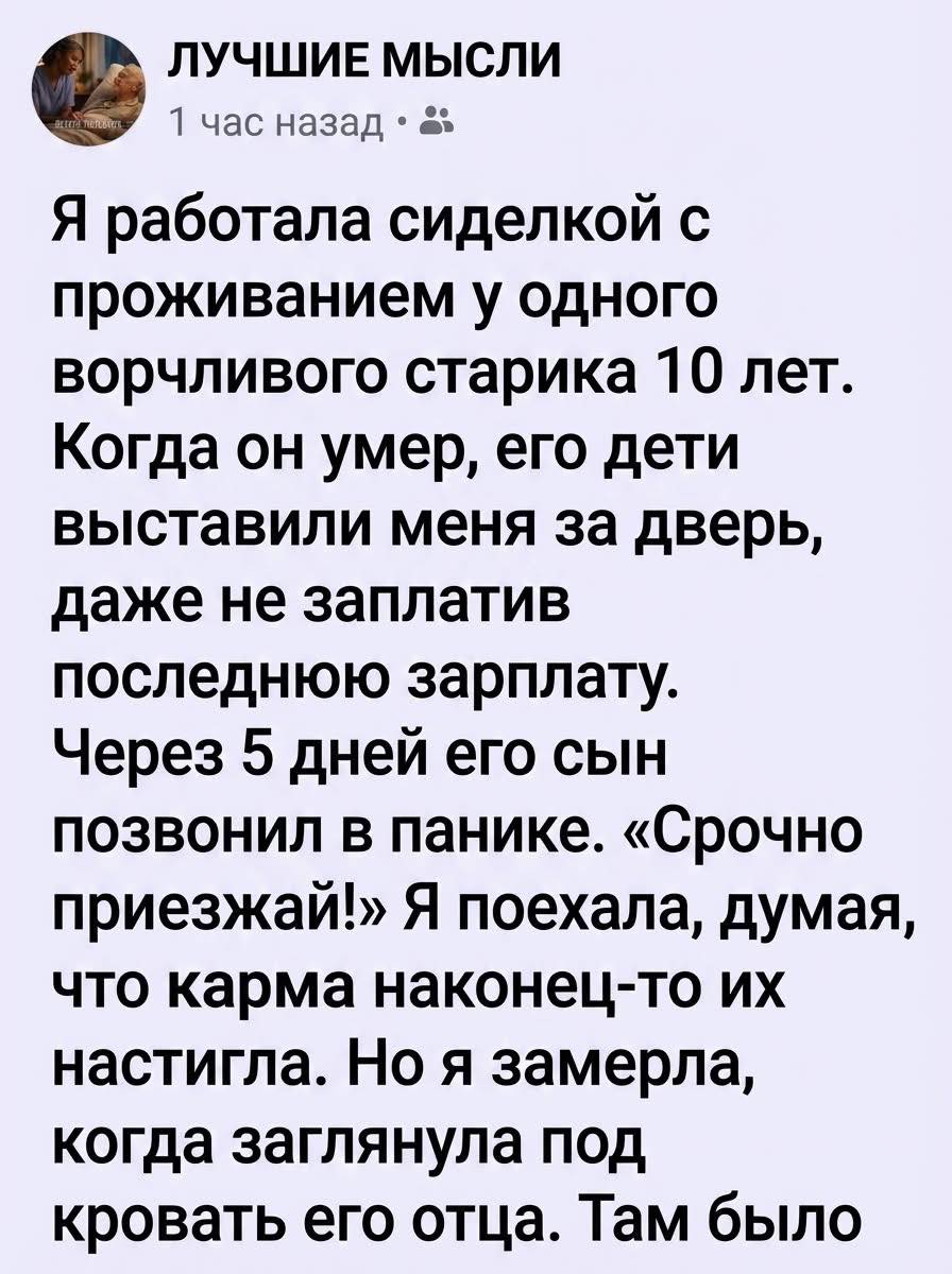 Потому что за этой грубостью иногда мелькало что-то другое. В редкие вечера, когда он забывался, он рассказывал истории из молодости. Про войну, про первую любовь, про то, как строил дом своими руками. Тогда его голос становился мягче, а взгляд — живым.