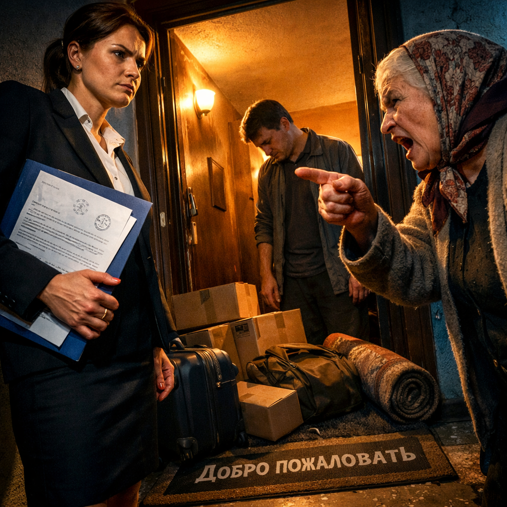 Светлана поднималась по лестнице после долгого рабочего дня, когда увидела эту картину. Прямо у её двери, на коврике с надписью «Добро пожаловать», громоздились чемоданы, коробки с посудой, пакеты с одеждой и даже свёрнутый ковёр из спальни. Рядом стояла раскрасневшаяся Валентина Петровна — её свекровь — и с видом победительницы поправляла платок на голове.